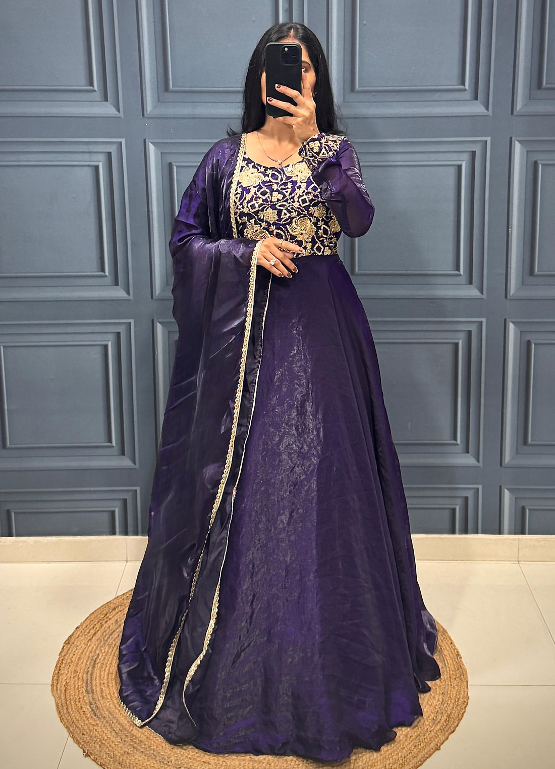 Fandy Silk Gown Product Description This Beautiful Gown Duptta made for soft and shiny fandy...