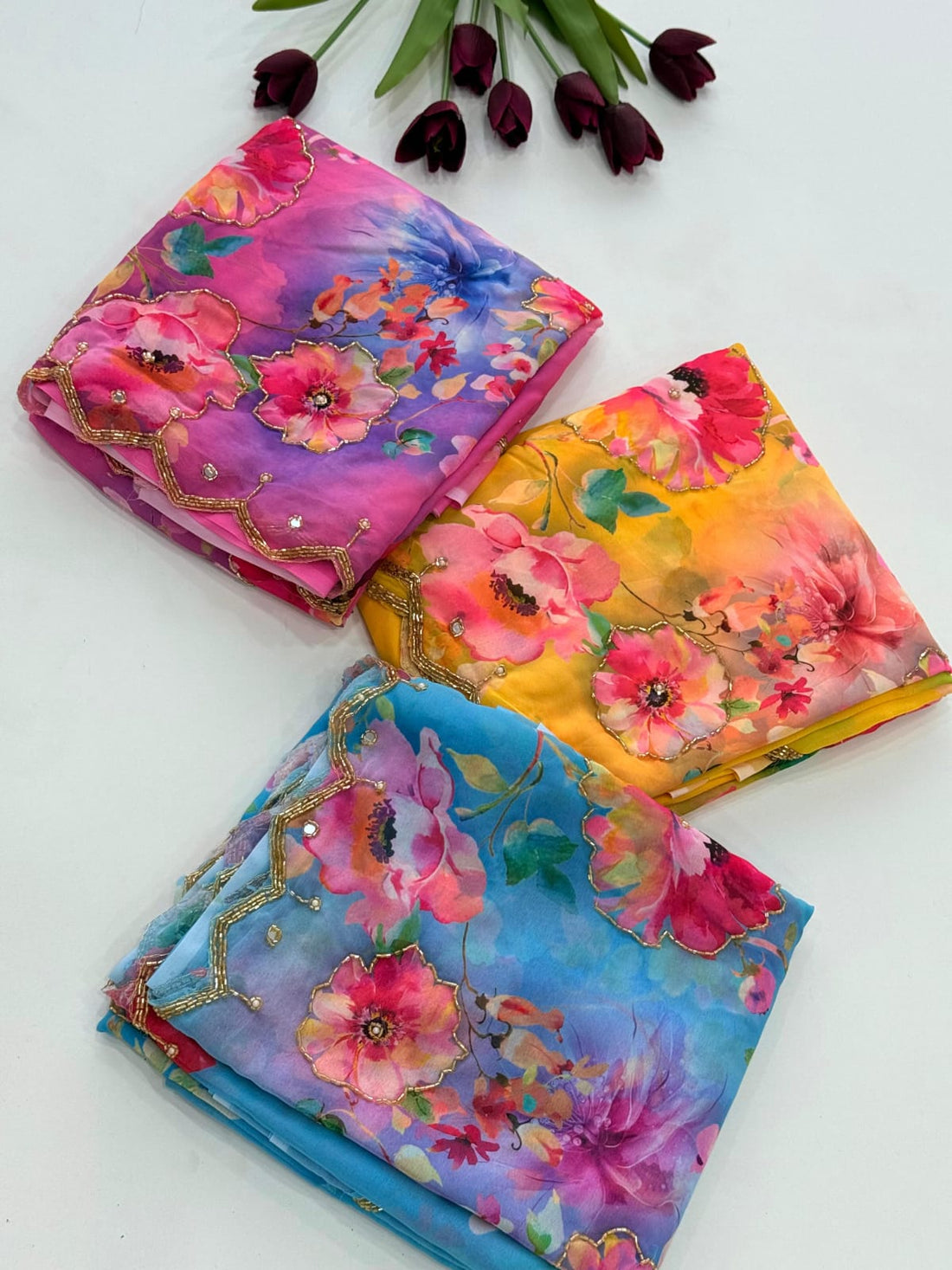 Exclusive elegant launch for fancy collection perfect for any function light weight *faux georgette* saree...
