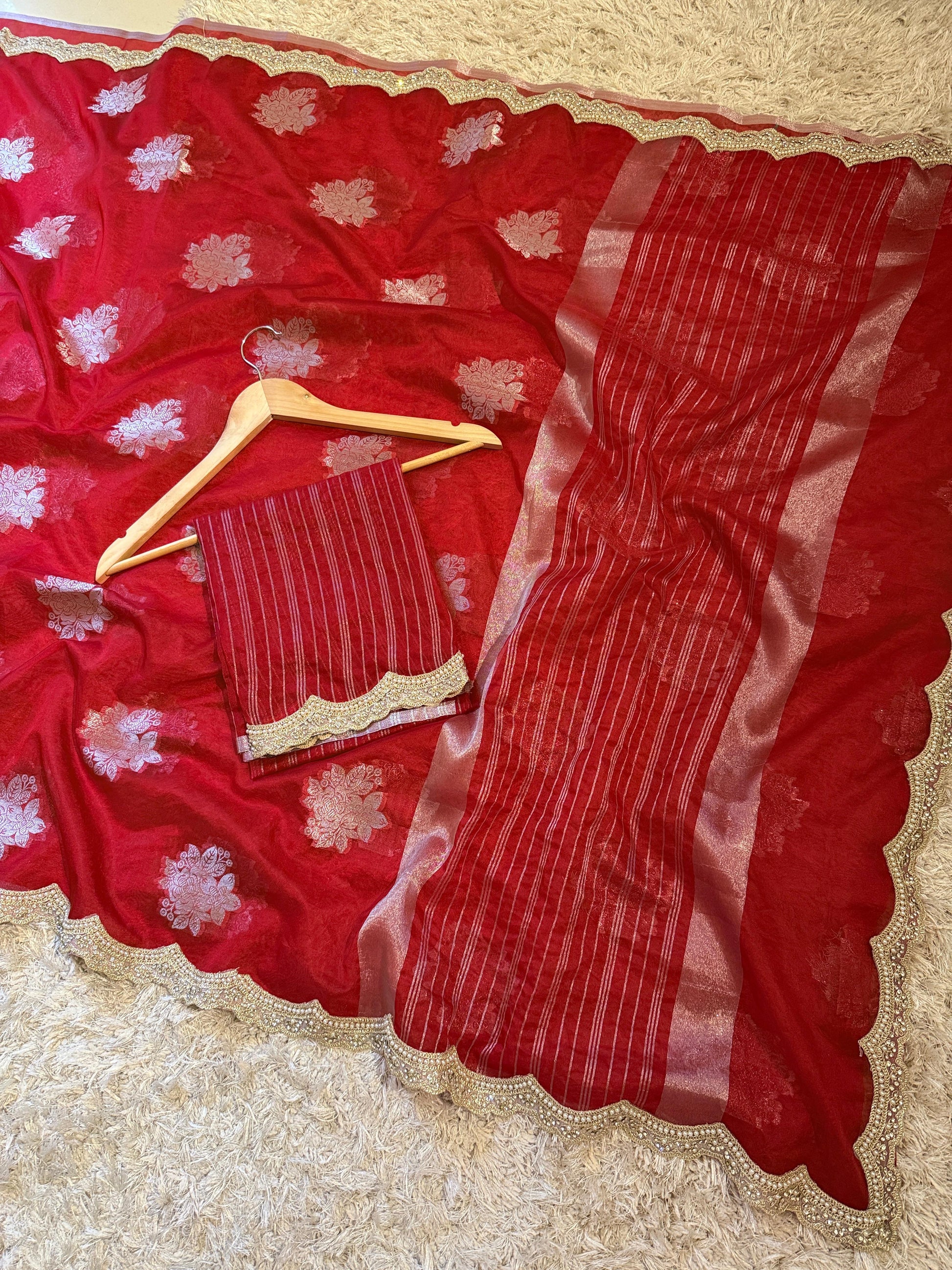 Banarasi Kora Organza Saree with Fancy Lace Work Border