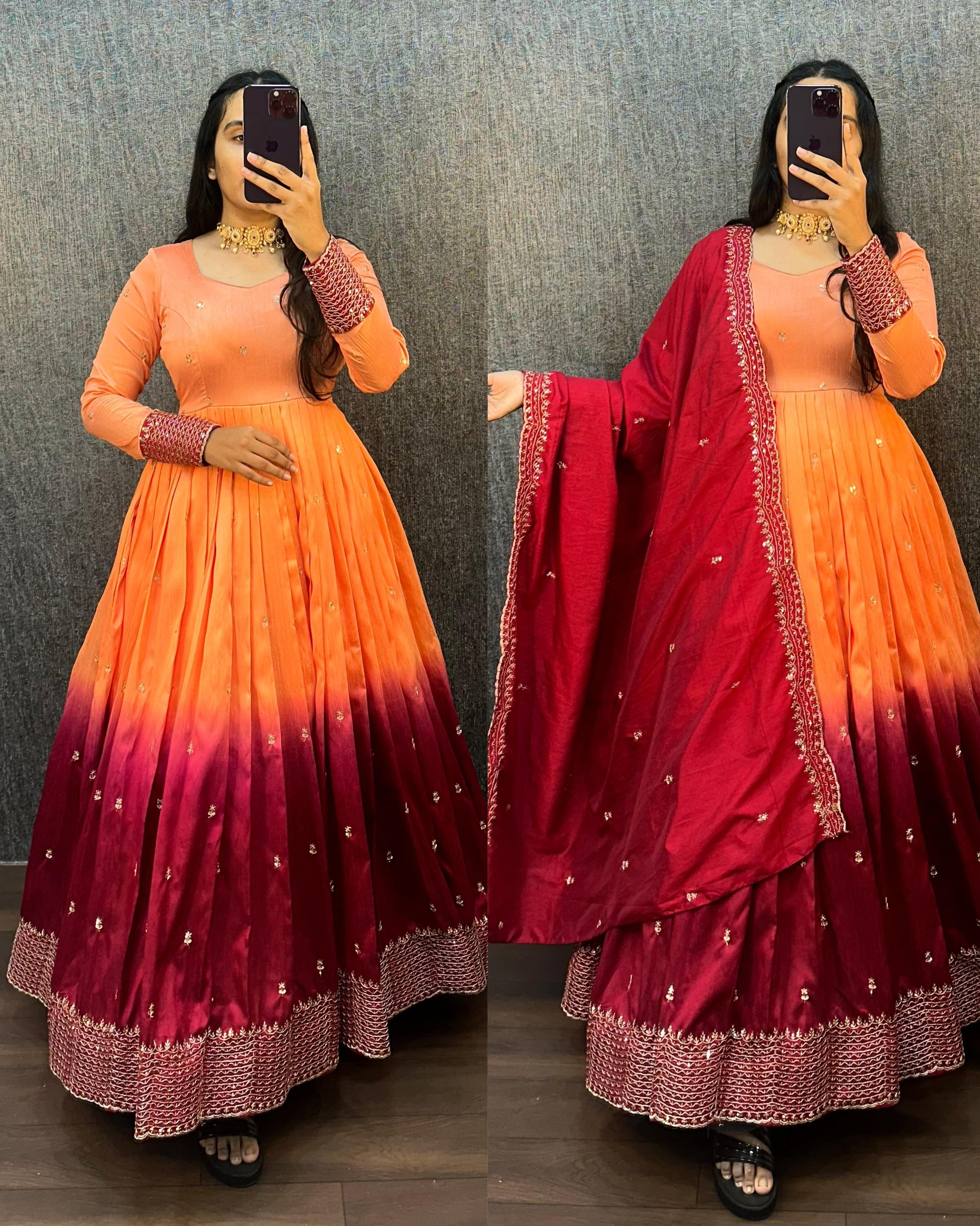 Beautiful Dual Shade Long frock with dupatta