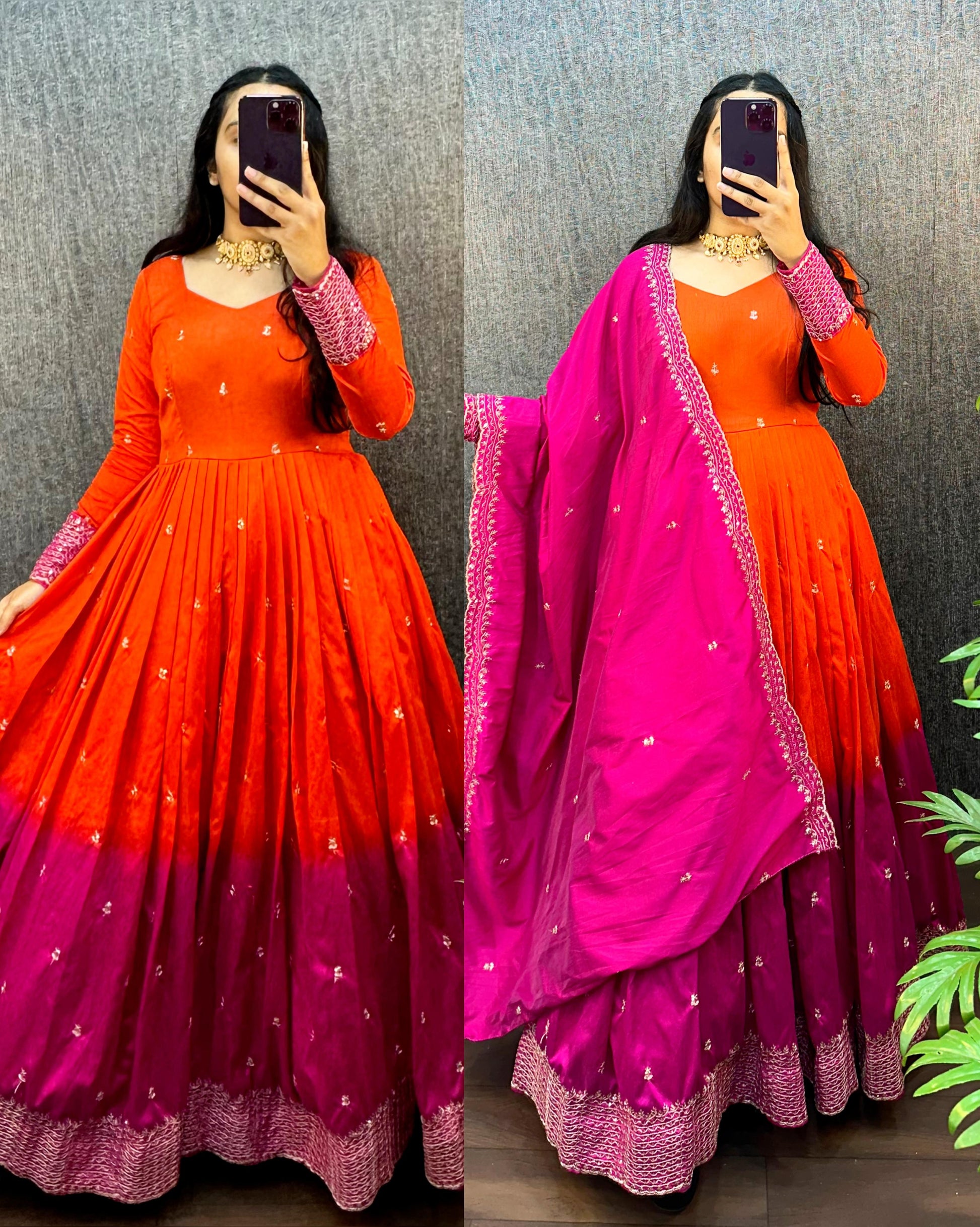 Beautiful Dual Shade Designer Long Frock with Dupatta