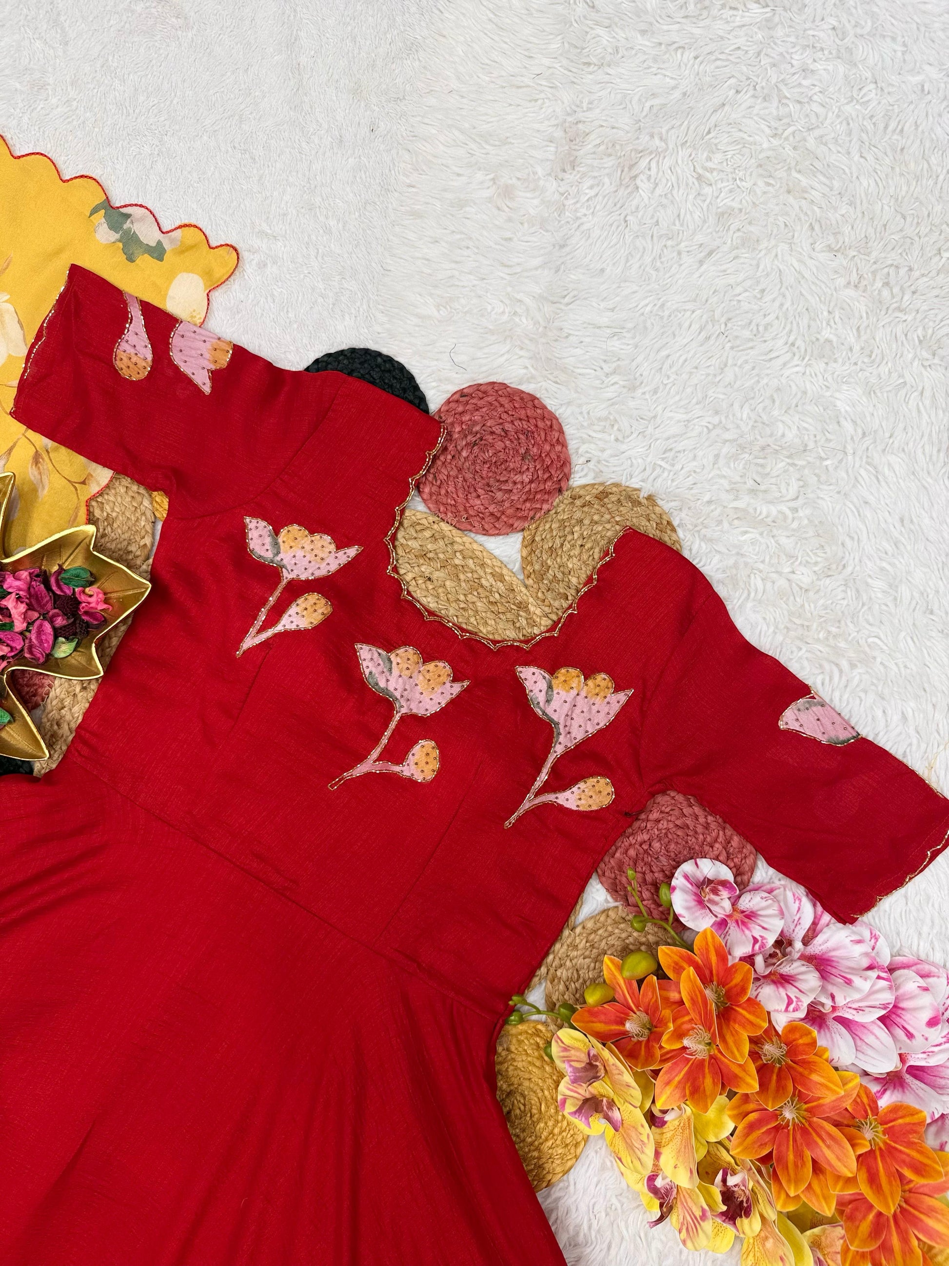 Launching Our Latest Beautiful Vichitra Hand painted Maggam Work Gown with Dupatta – Where Elegance Meets Comfort! ✨