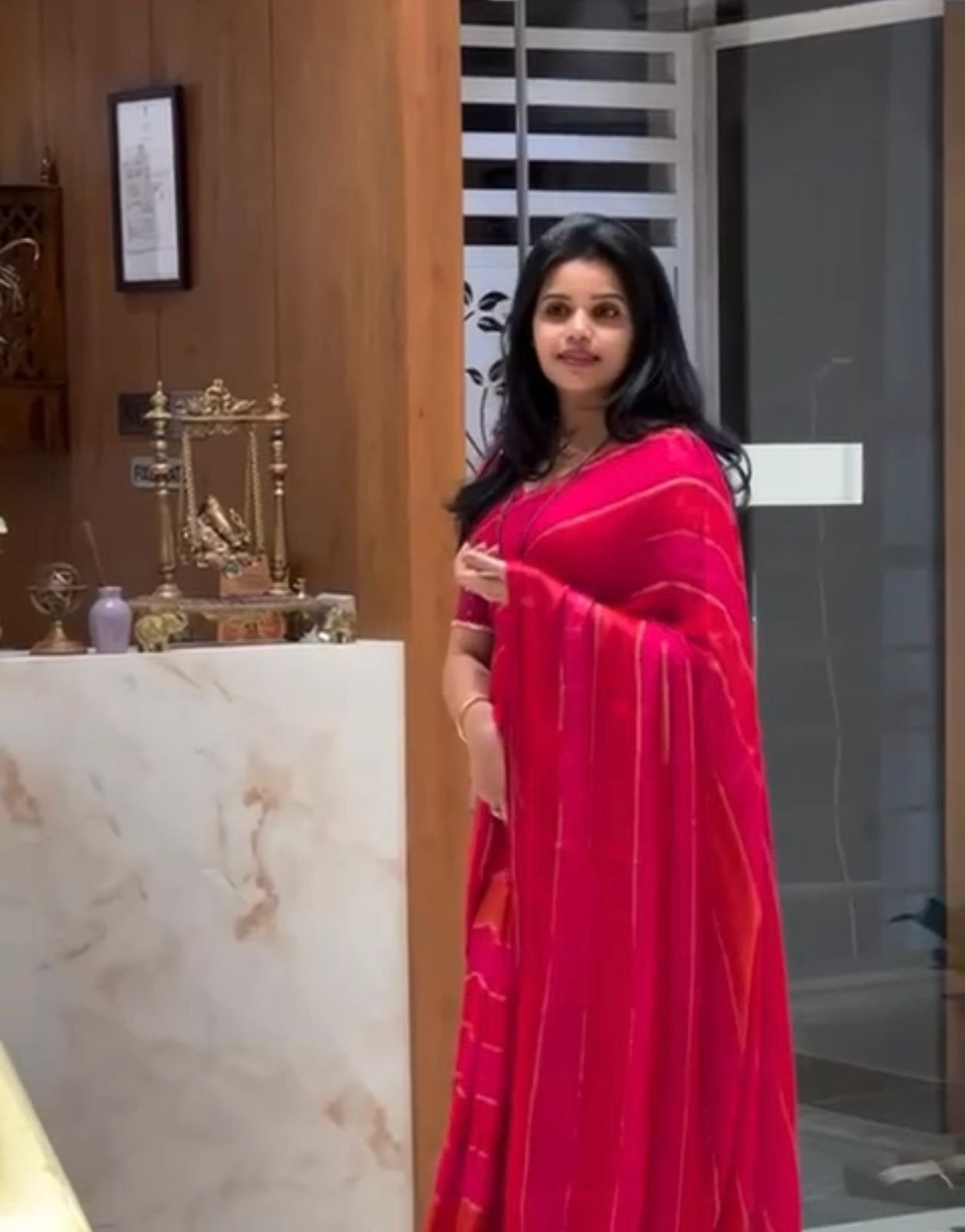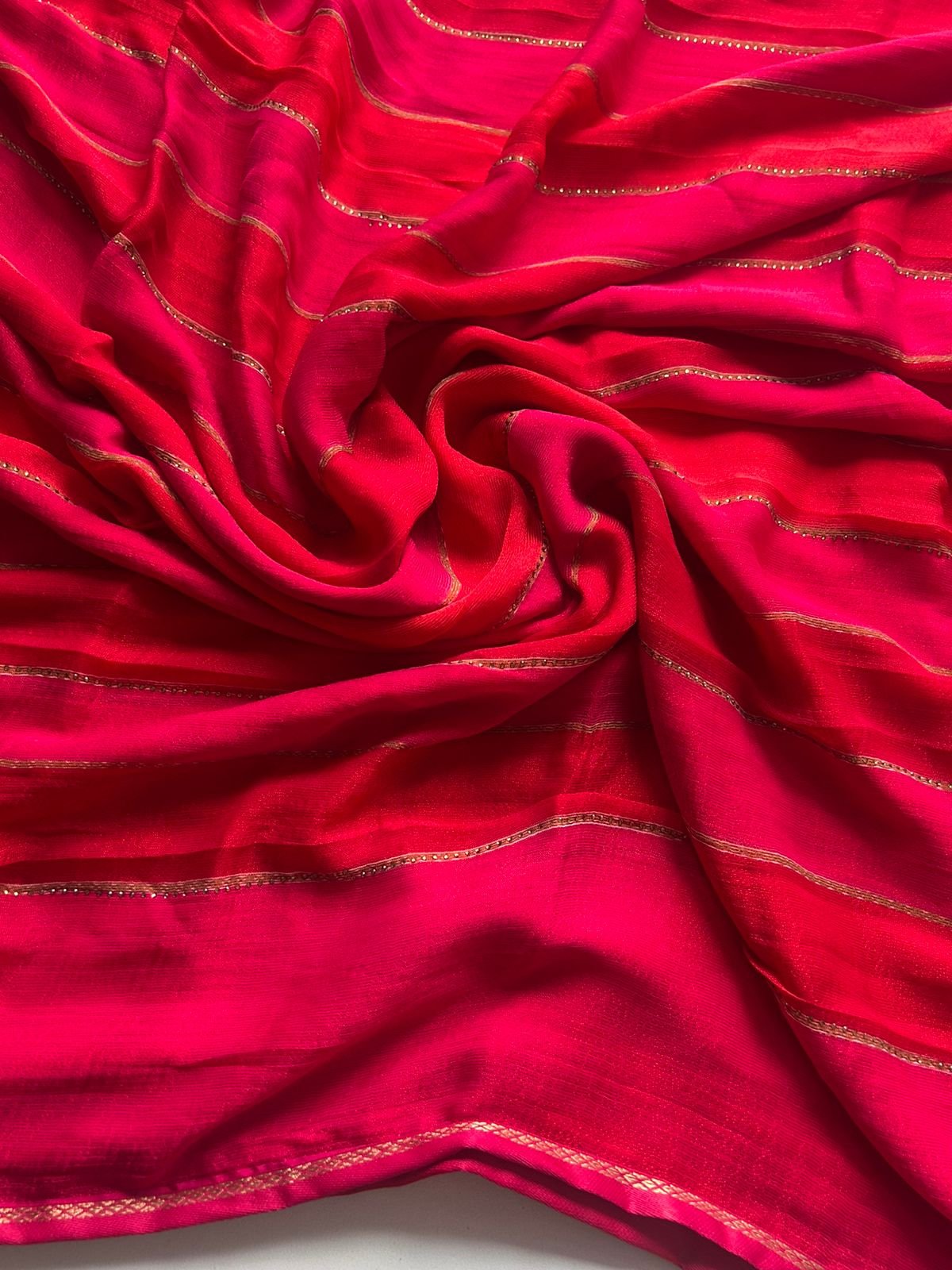 Fancy chiffon georgette Saree with multi tone stripes allover stone drop work lines