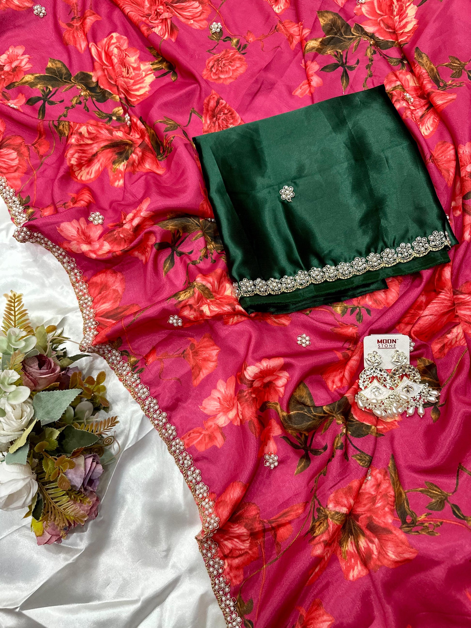Stay beautiful with our new chinnon digital printed collection with beautiful embroidery work and dimond work....