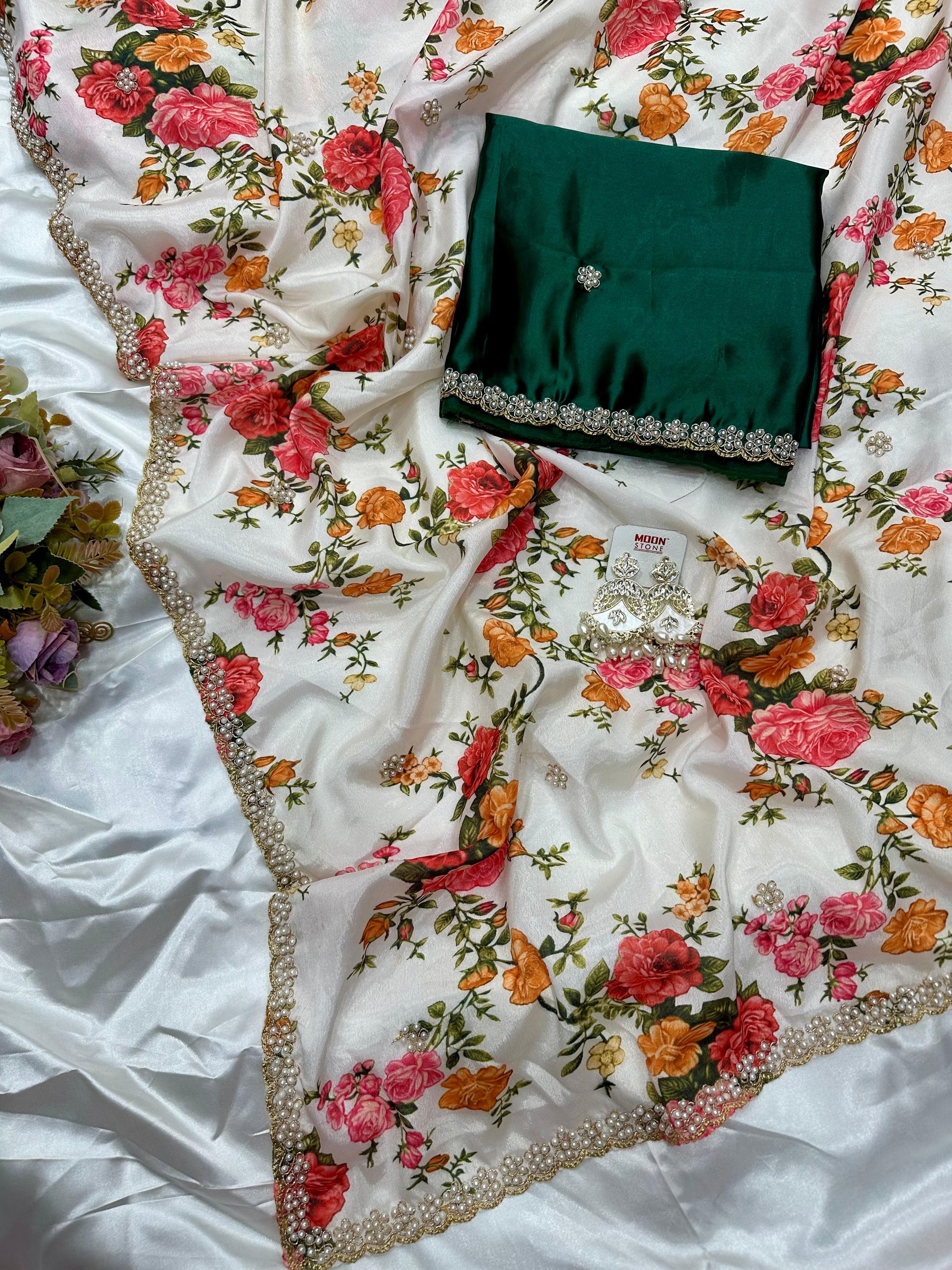 Beautiful embroidery and dimond work and Digital print in all saree with beautiful border Cutwork