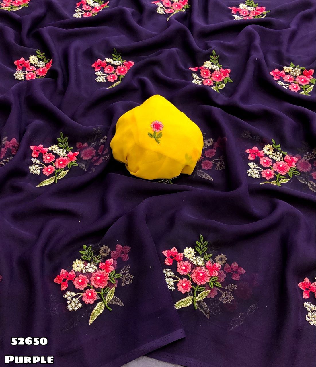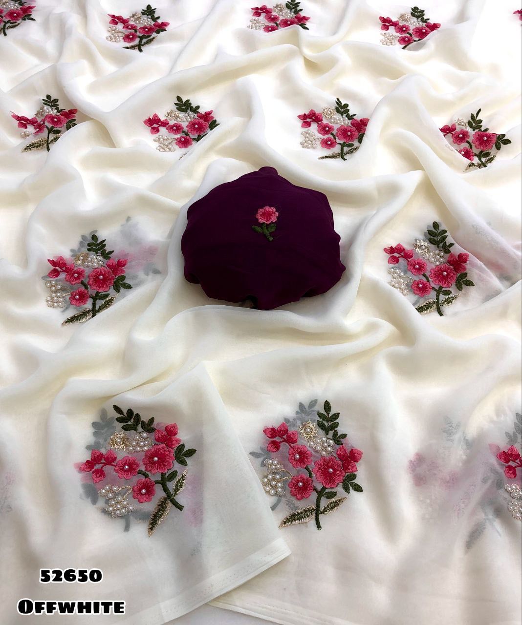 Launching new Faux georgette with floral design embroidery & pearl moti work
