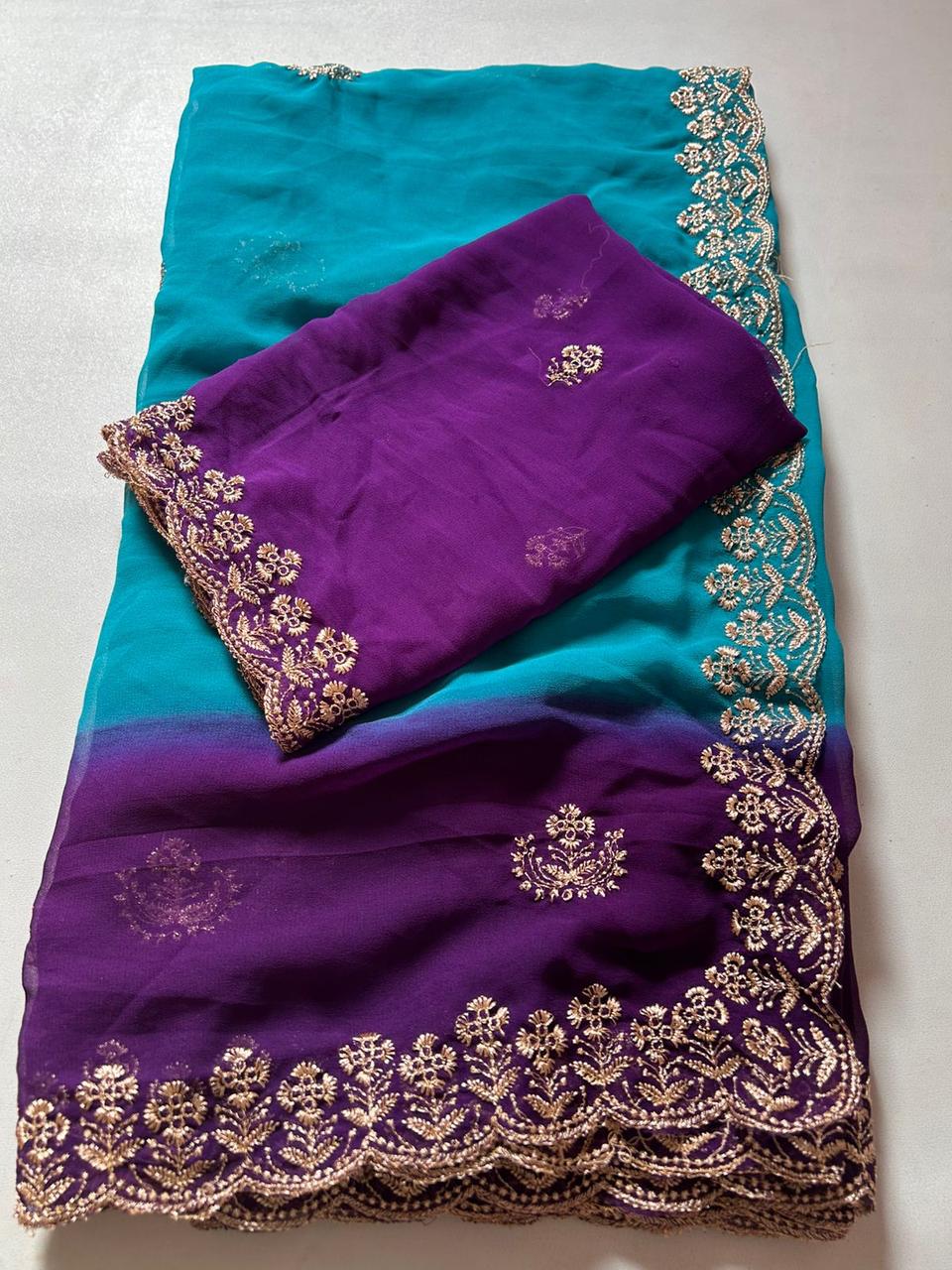 Soft Chiffon Silk Fabric Along With Padding Pattern & C - Pallu Sequence & Work In Saree* Border Along With Cutwork sequence work & Designer Worked Blouse