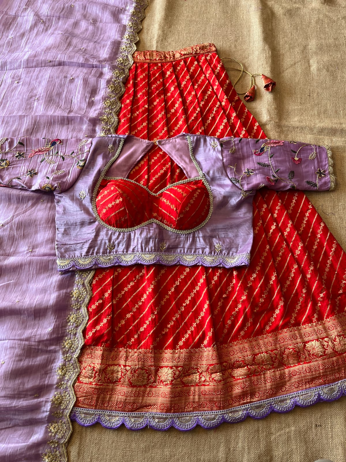 Lehengha Fabric : Very soft khadi fabric with zari weaving and embroidery scalloped lace