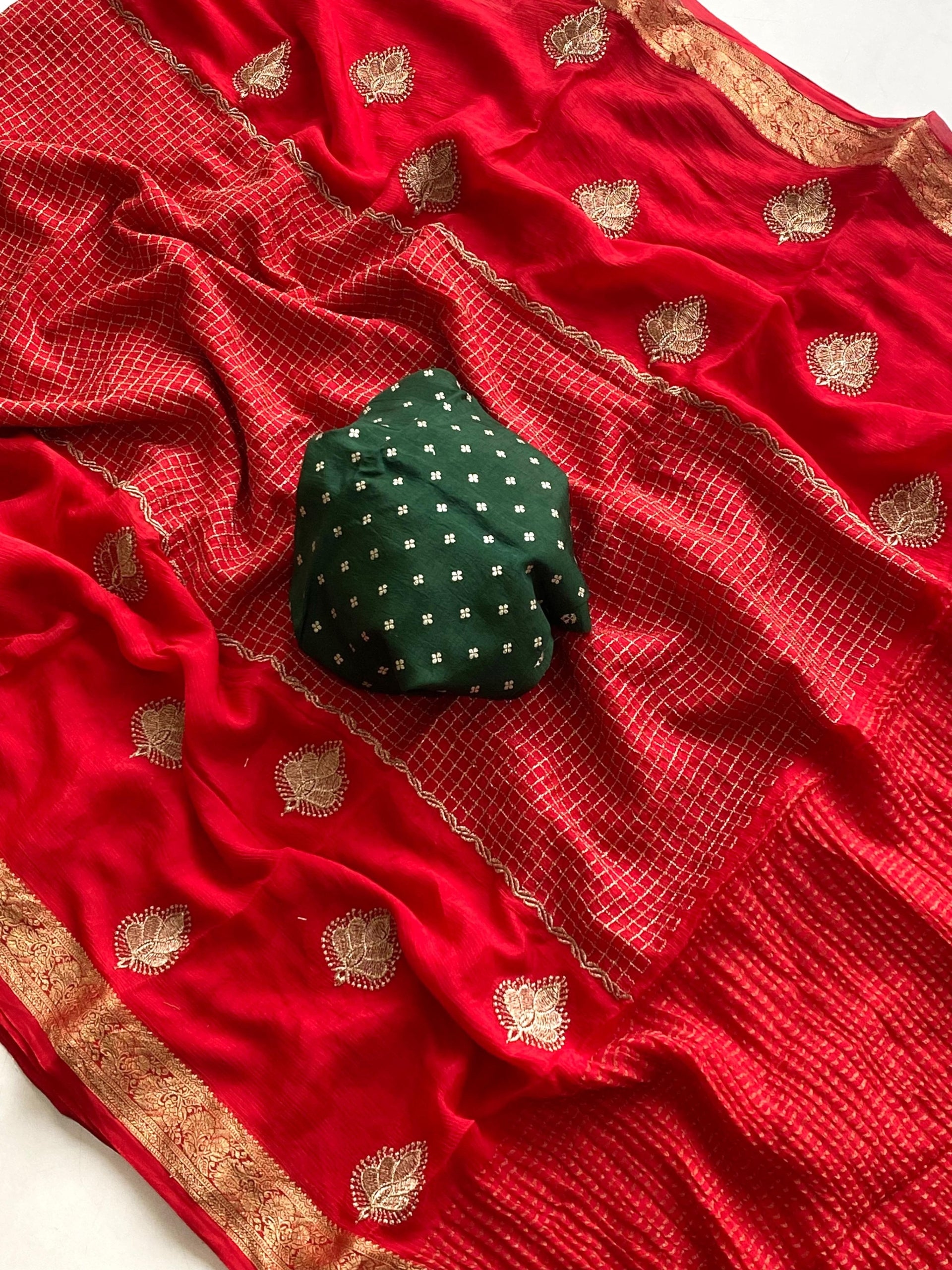 Premium Chinnon Chiffon Sarees having beautiful _EMBROIDERY_ design and a concept of _zari embroidery which looks like weaving_ all over with jacquard border.