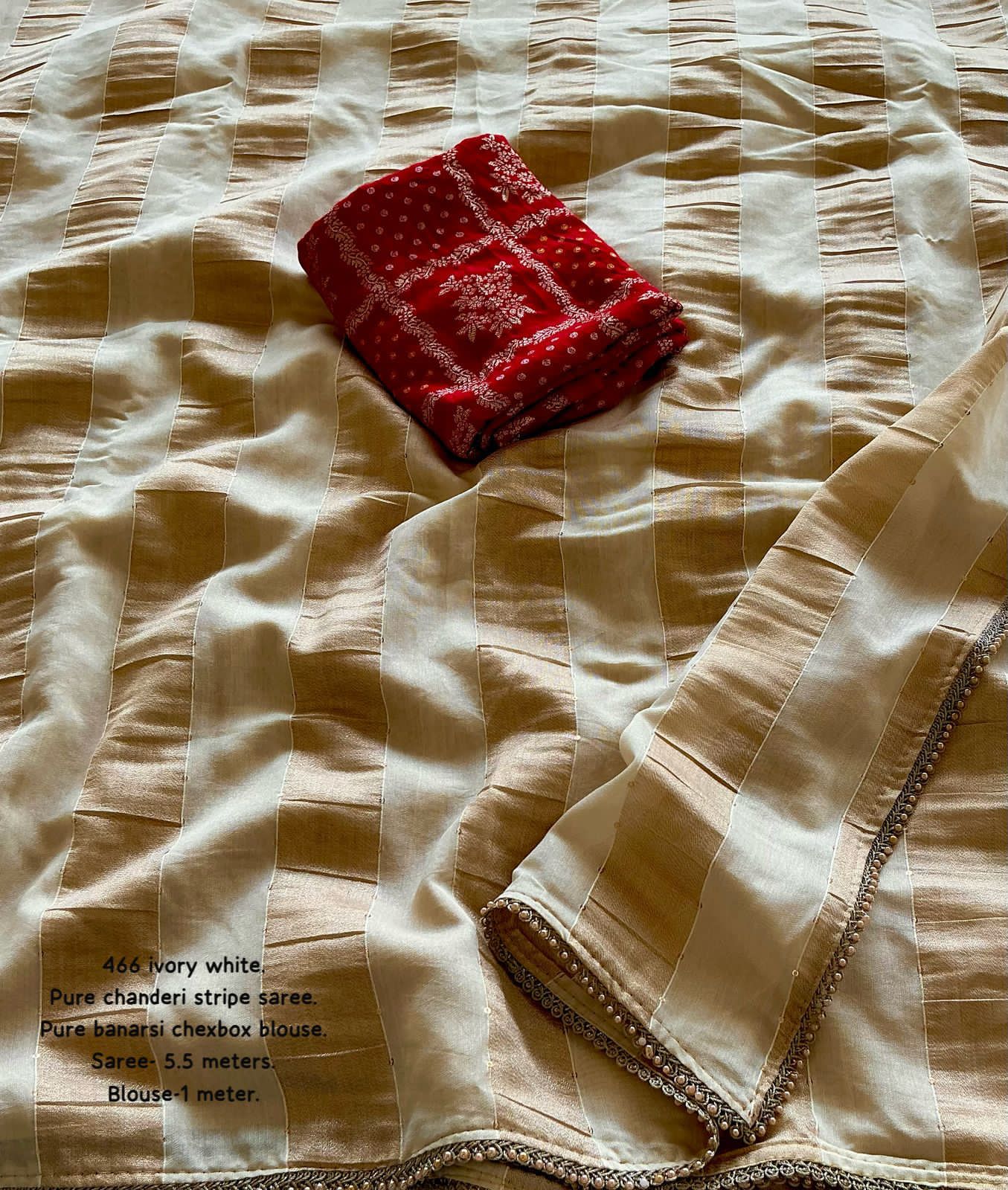 Pure viscose chanderi saree with vertical gold zari sequence stripes