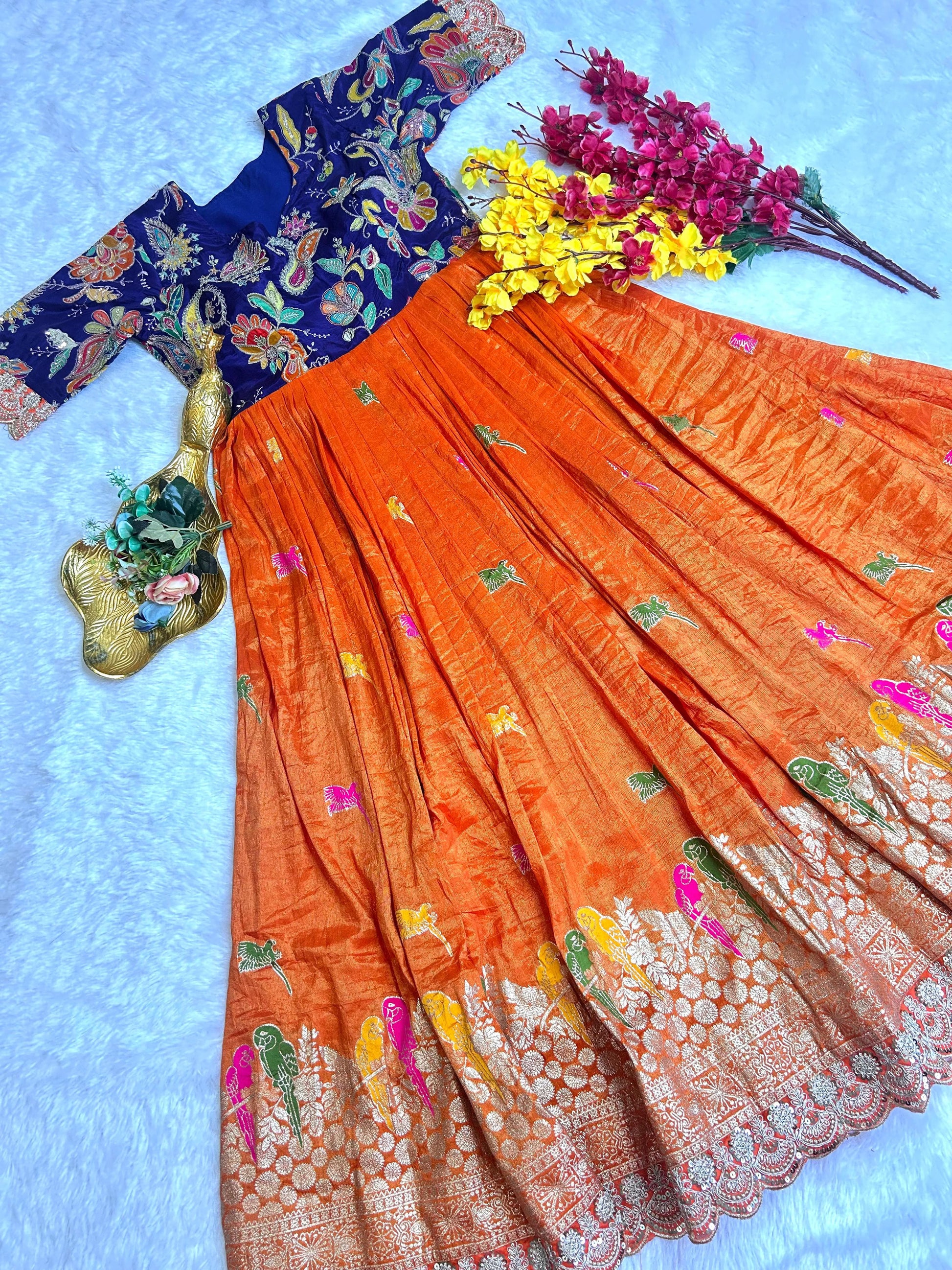 New Launching Paithani dola silk gown with embroidered border women's super collection with original modelling. Beautiful fully stitched designer gown with Embroidered border Dupatta