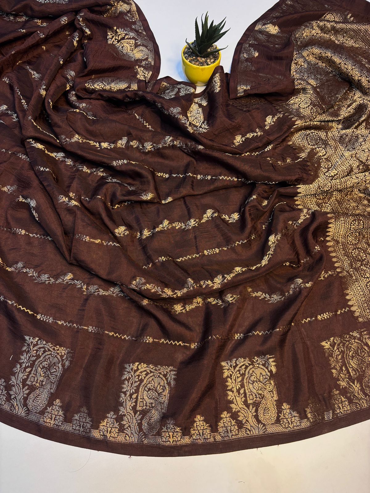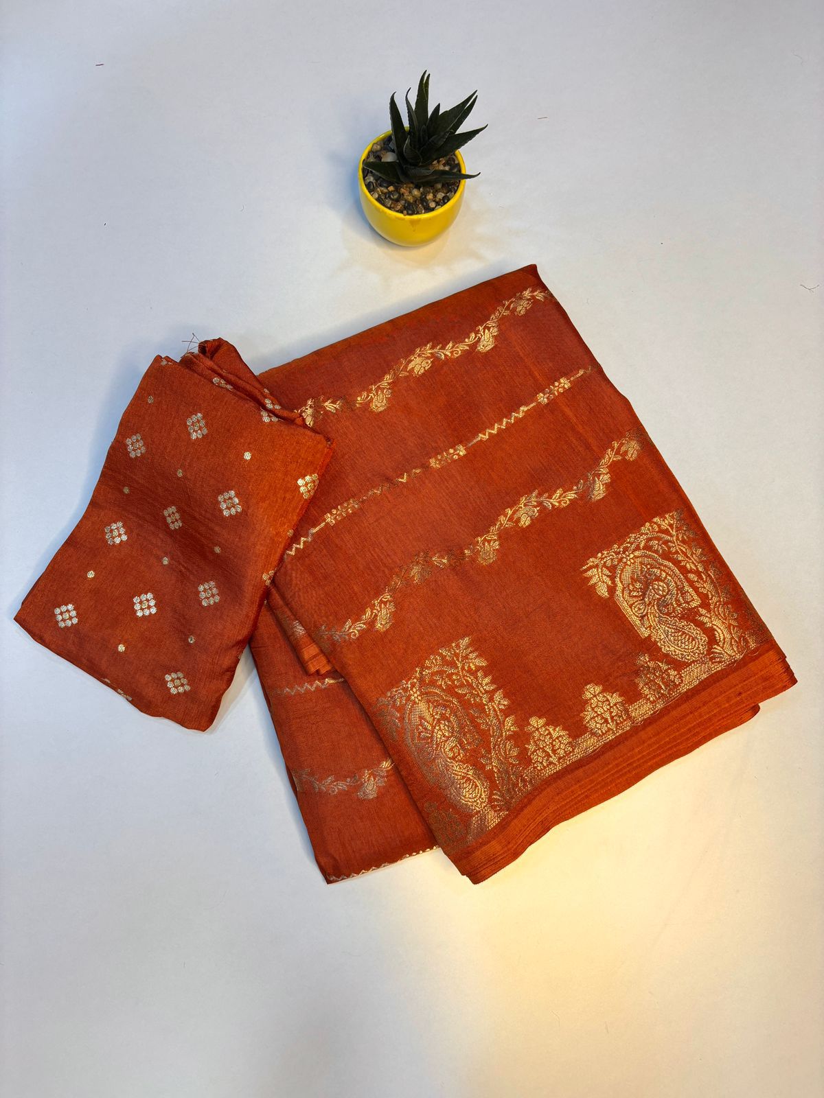 Pure Russian khadi Viscos saree with beautiful peacock figur jaqcard patta with Russian butti blouse