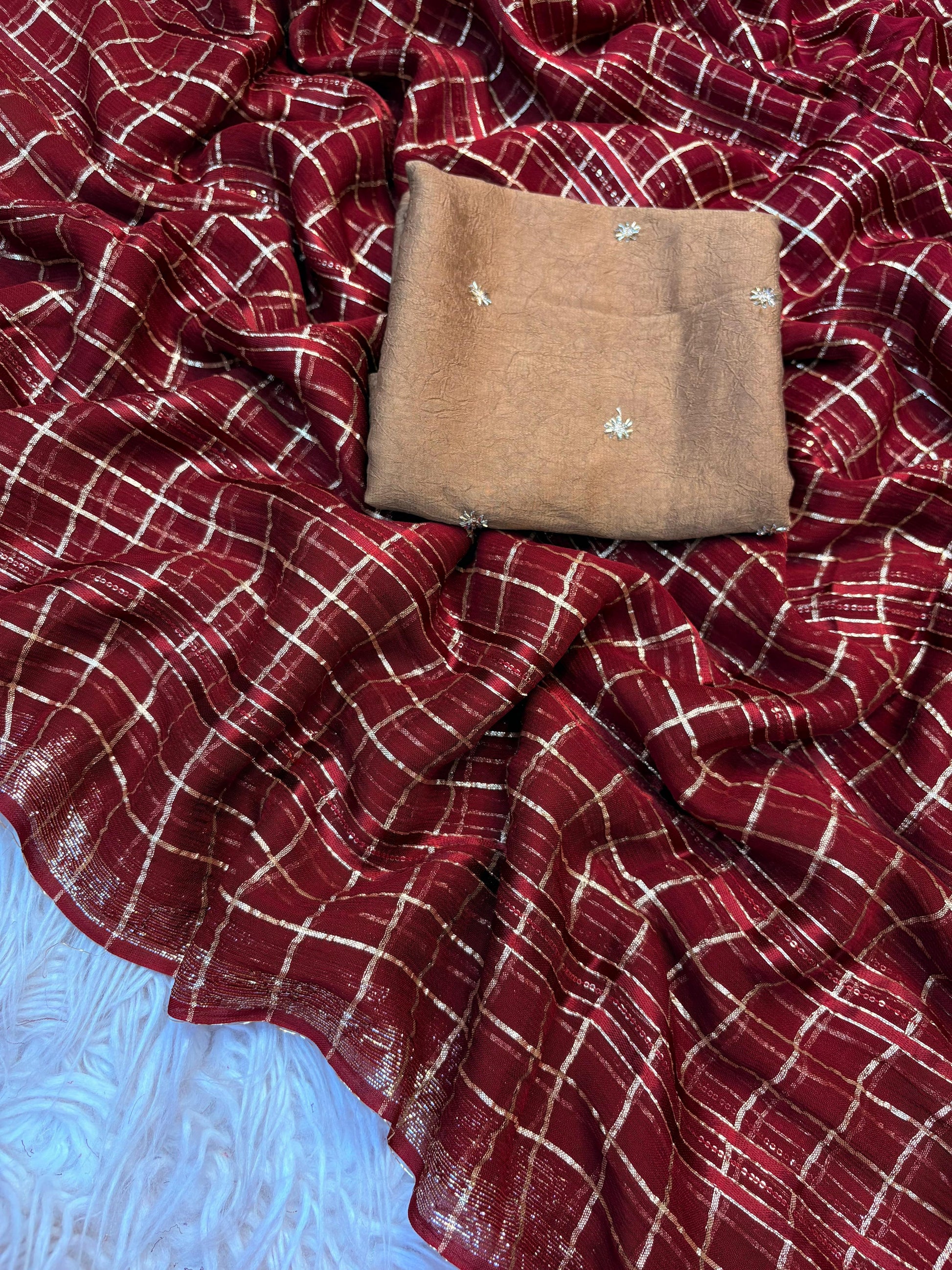 Pure viscose saree with designer blouse with beads worked butti butti