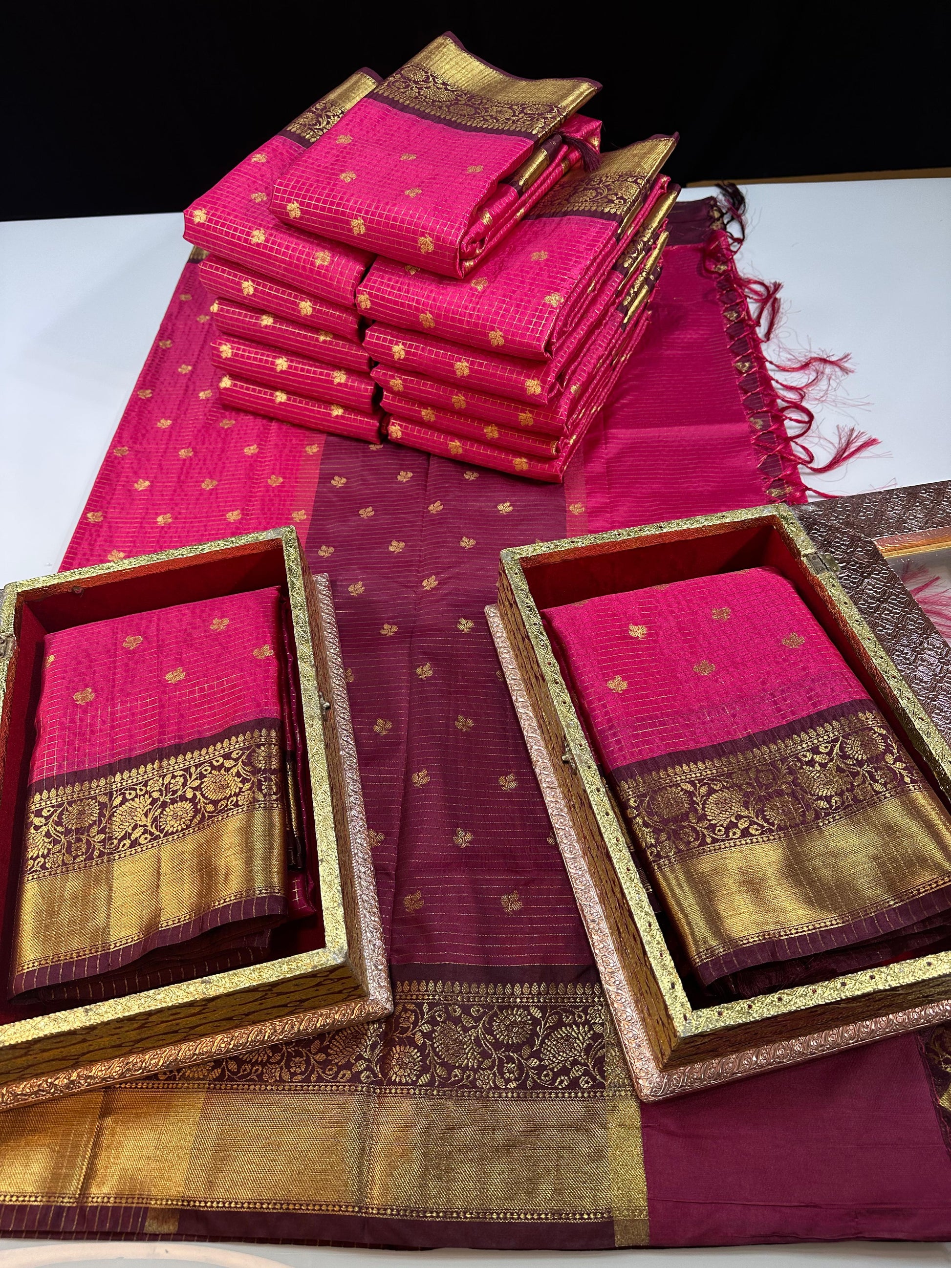 Presenting you all the premium soft semi-gadwal inspired check buty weaving saree in the most viral shade