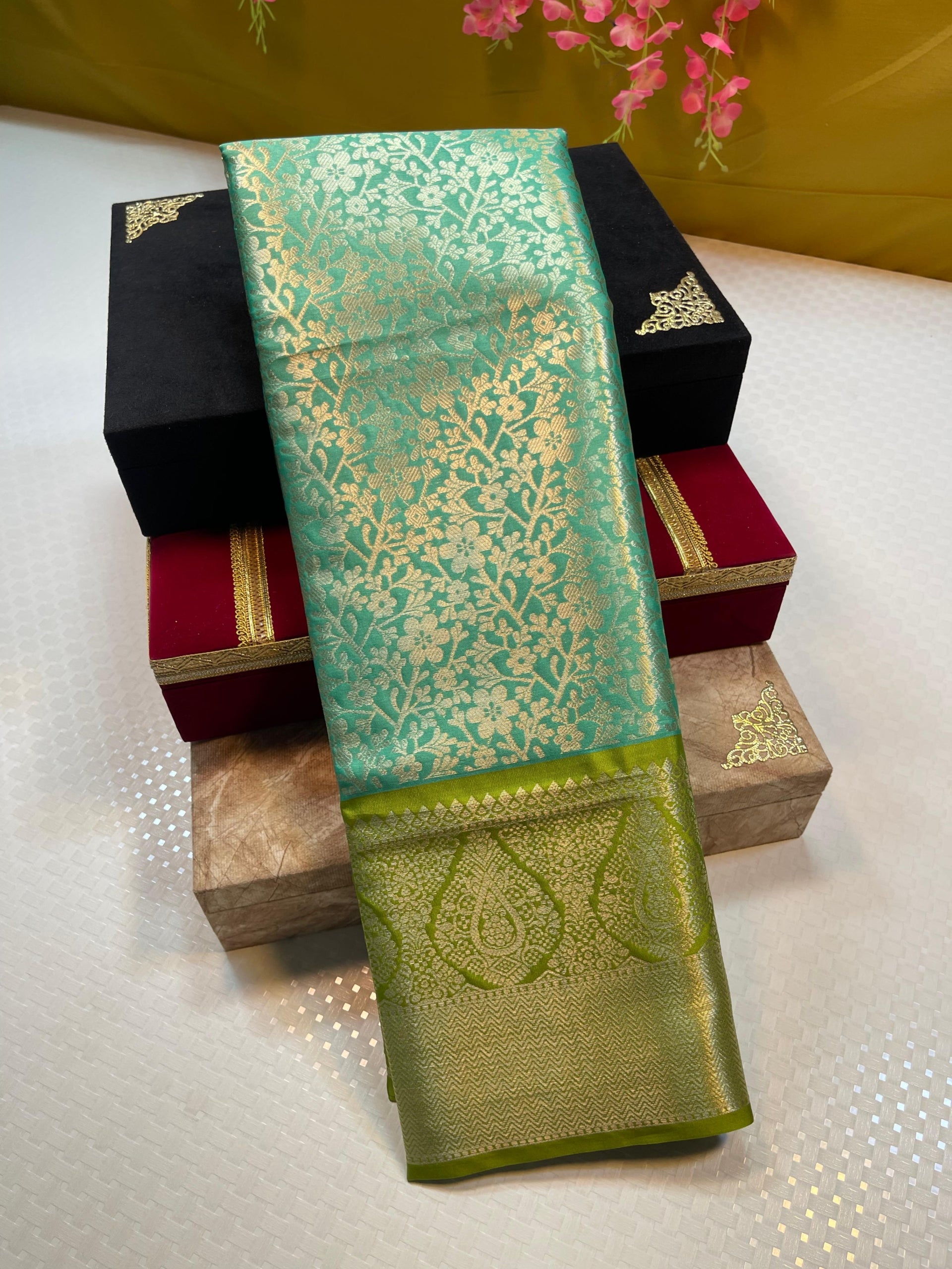 Presenting the new range and pattern of semi pure Kanjeevram soft silk pattu weave with kanchi border and