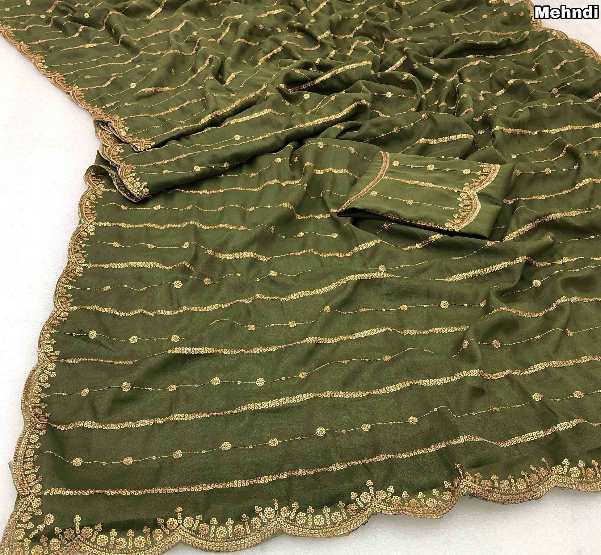 Star georgette with gold Embroidery & sequence work with scalloped cutwork border
