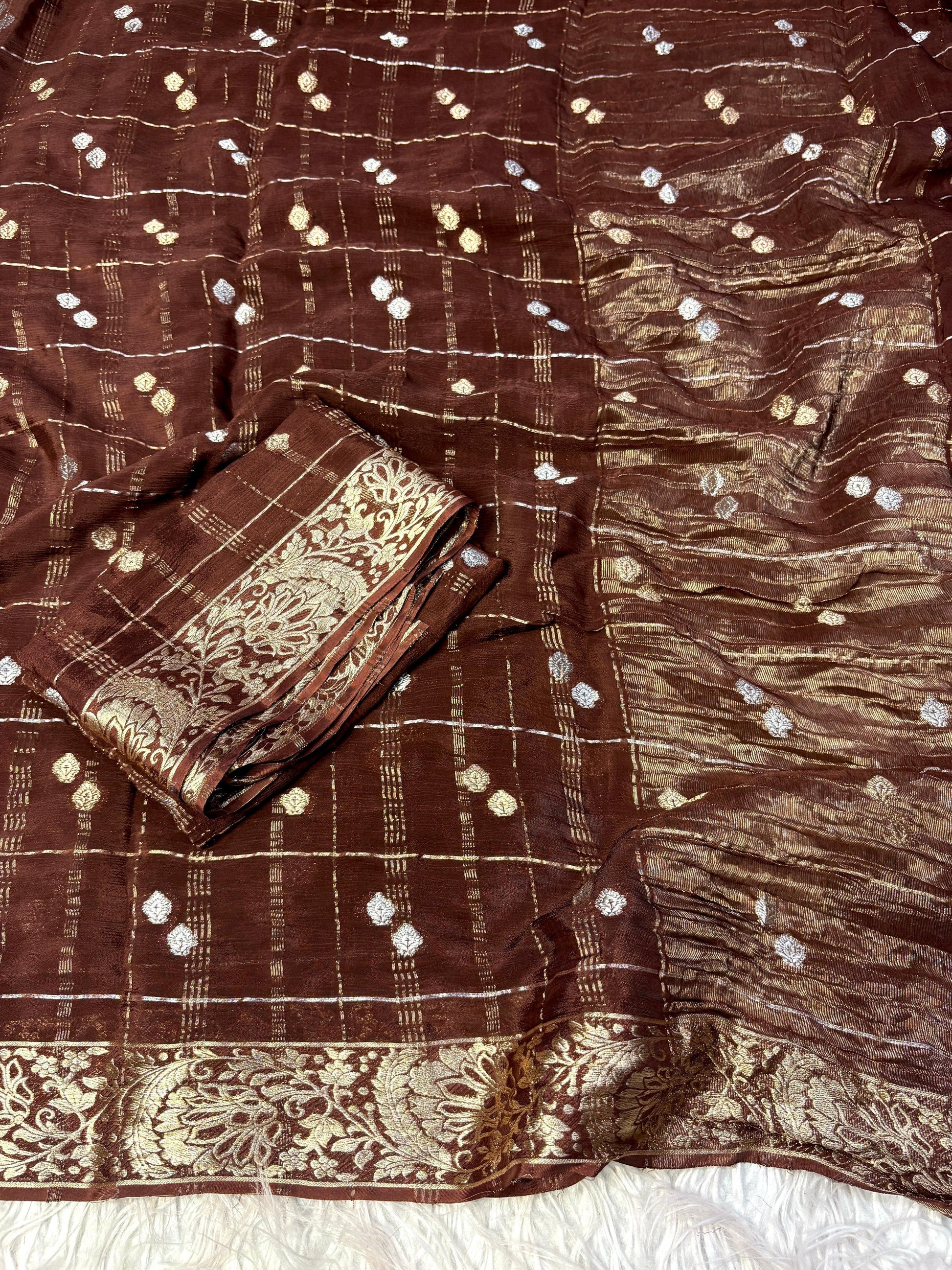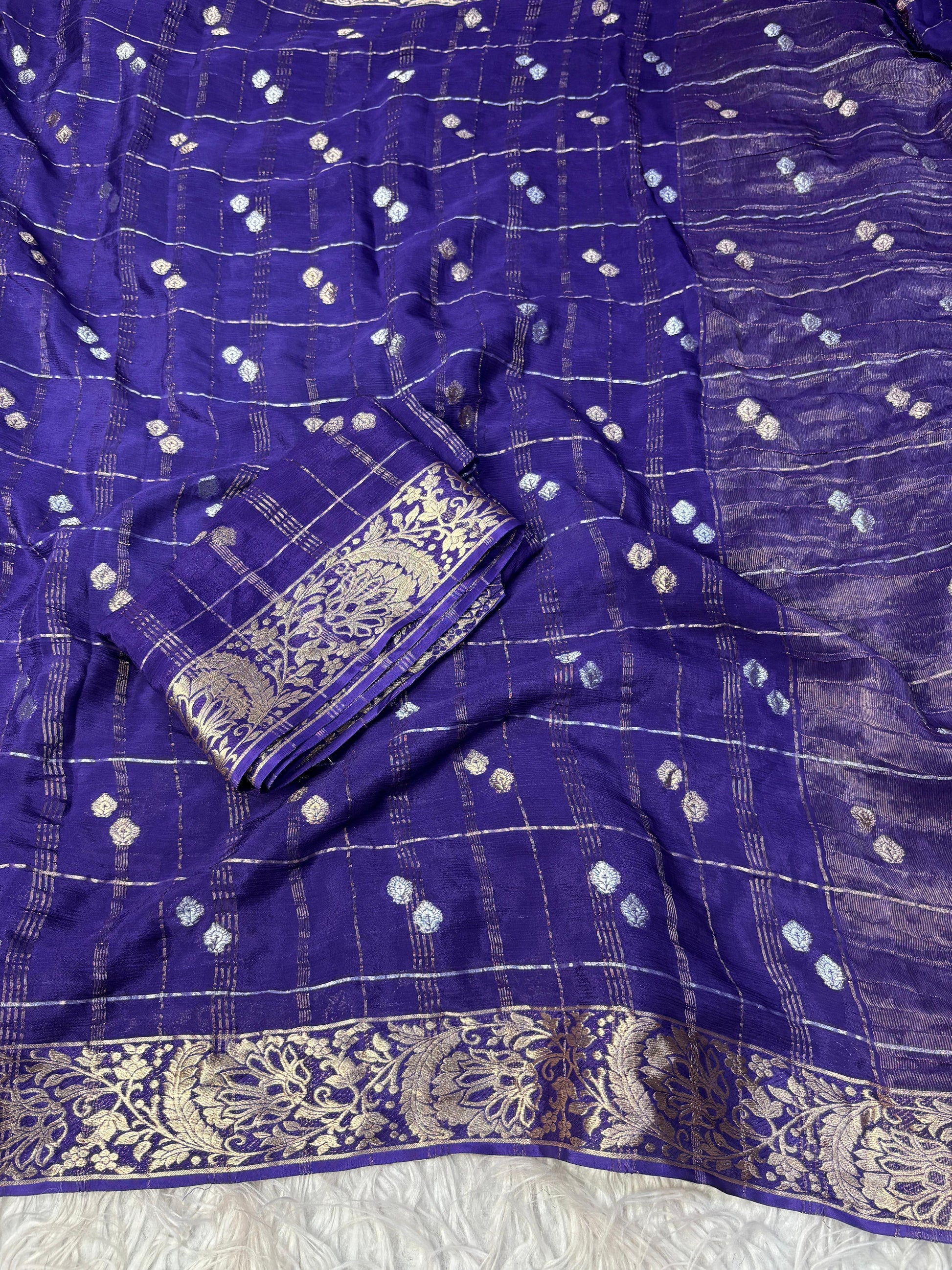 Pure Viscose chinnon saree with Chex weaving and border