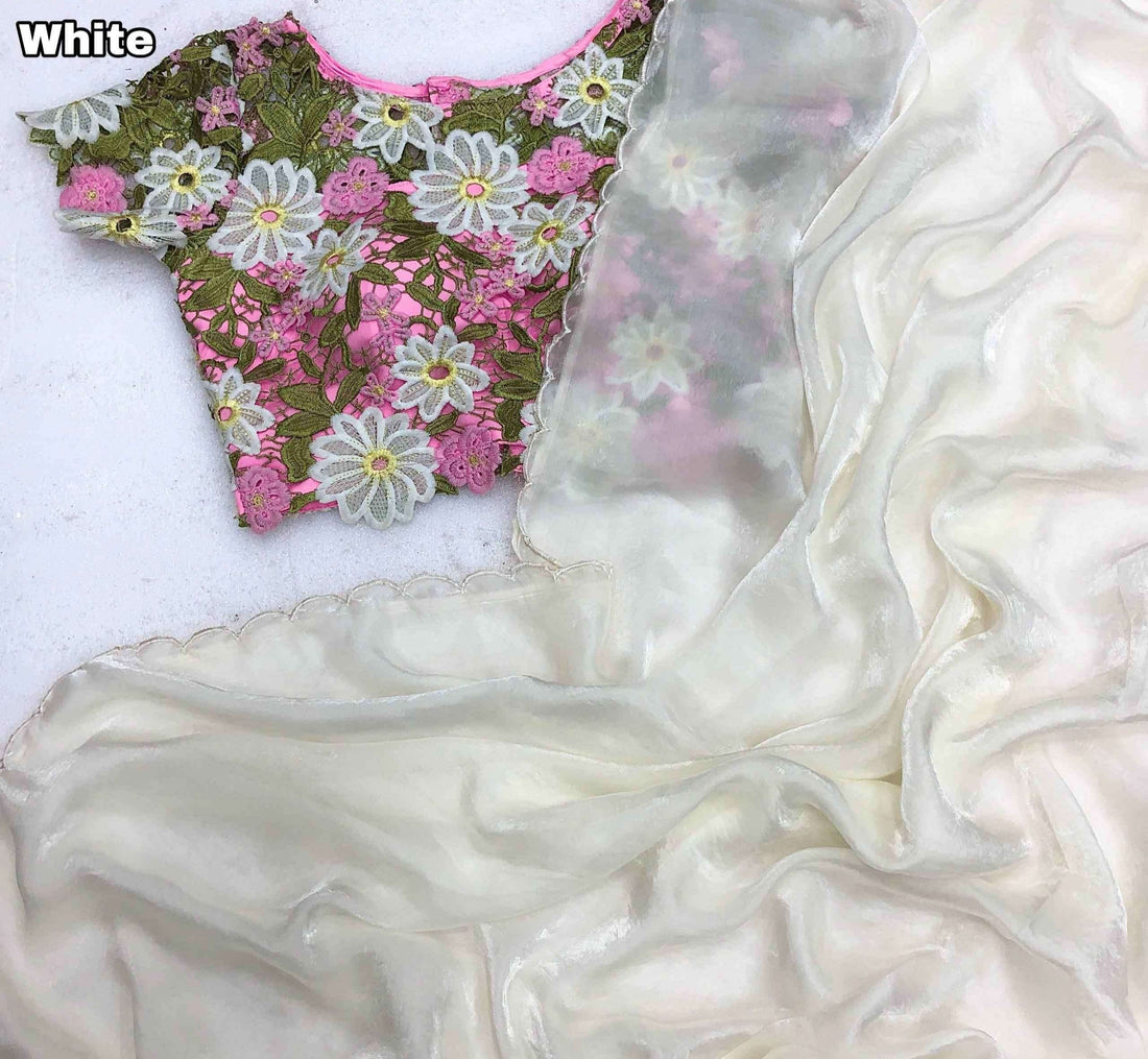 Georgette Butterfly and Floral Designs Saree with Handwork